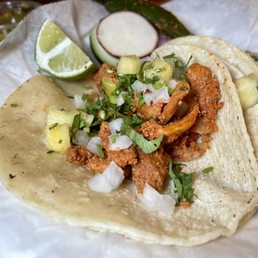 When I'm craving some authentic tacos, Rivas is my go to. The place is kind of small which is why I always order to go. They have different types of tacos, burritos, quesadillas and more. My favorite order is the chicken tacos. Sometimes I find it hard to choose one and purchase a couple types of tacos. I love the fresh onions and cilantro they put on the tacos . They always give a bag of salsa, sliced cucumbers & radish, and fresh chips. I always get a bottle of Sidral Mundet Apple Soda with my tacos. Apple soda sounds off but it is so good! I'm a pretty big eater and I get full by two to these and the chips. If you like spicy they also add a pepper with every order. This place always hits for me. Can't wait to go back!